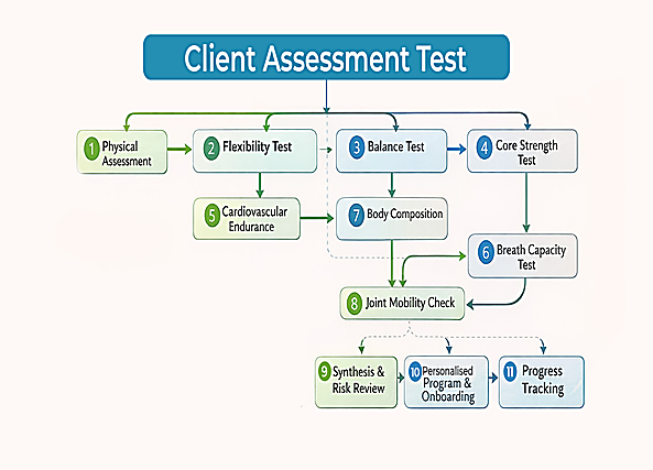 At YogMitra we start with understanding & not assumptions. Every new client completes a structured assessment that examines posture, flexibility, balance, core strength, cardio, breath, body composition and joint mobility.